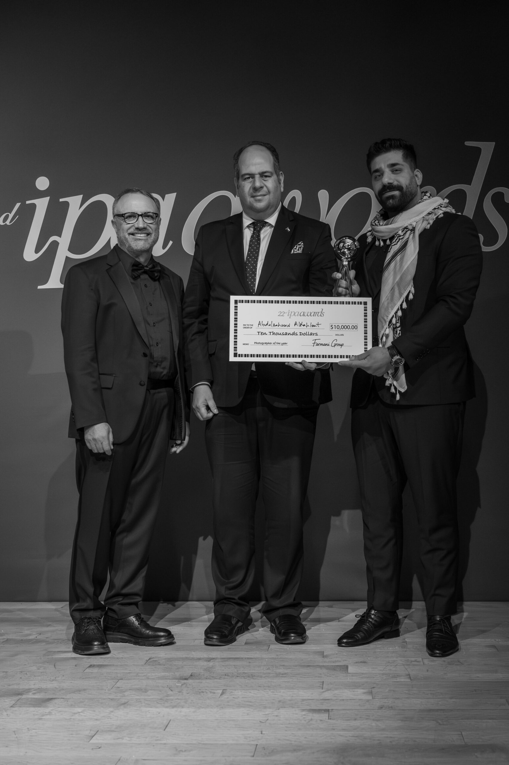 Among the evening’s most powerful moments was the recognition of Abdelrahman Alkahlout, awarded IPA Photographer of the Year 2025 for his poignant series “Echoes of Genocide: Gaza’s Civilian Suffering.”