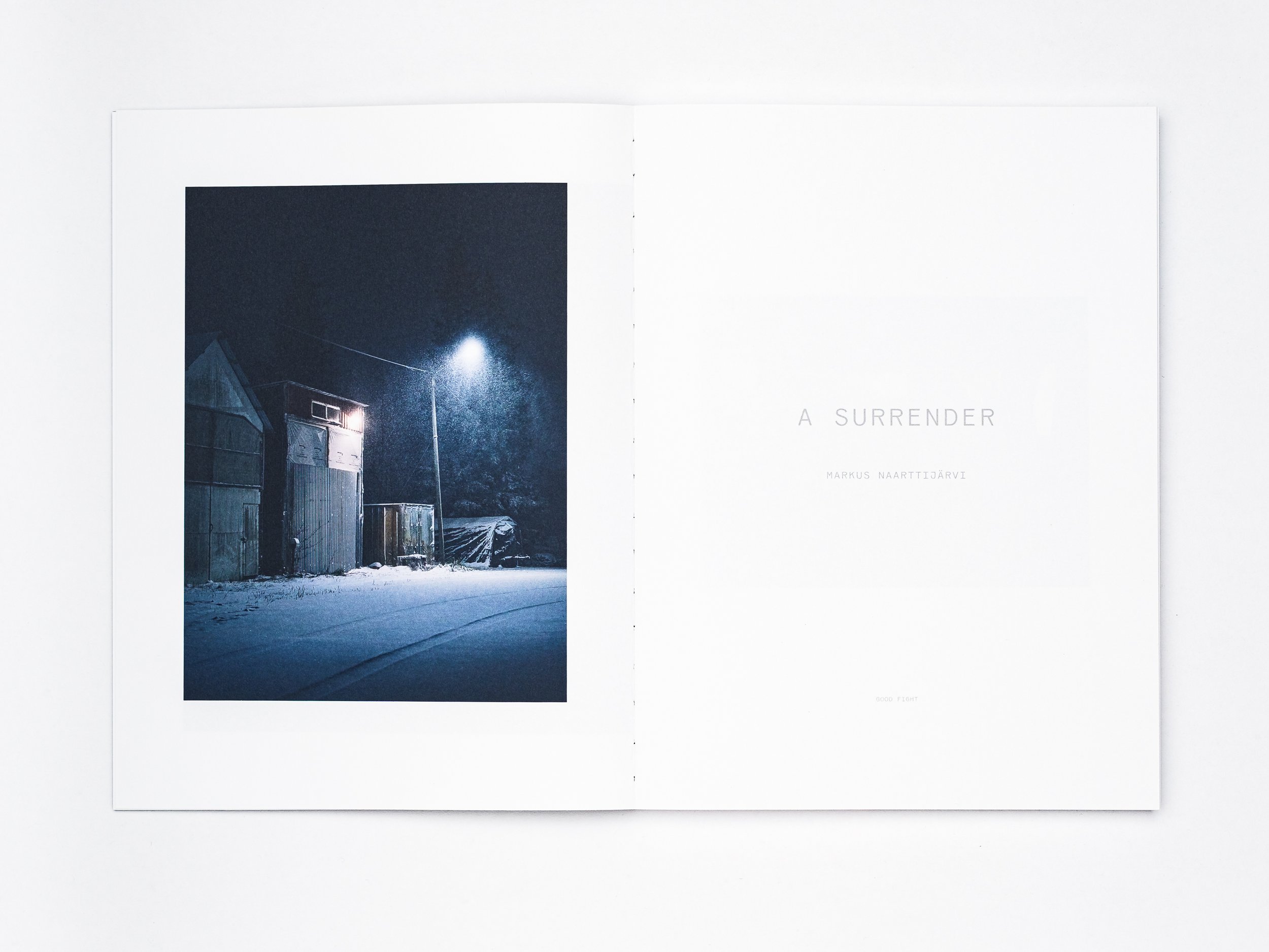 The haunting stillness of Swedish winter serves as the inspiration and backdrop for Markus Naarttijärvi’s debut monograph A Surrender. Shot over 1,000 consecutive days, Naarttijärvi navigates spaces stuck in a liminal twilight — somewhere between death and rebirth, where human industry dissolves into nature’s embrace. Each photograph is a step in a journey of appreciation between growth and decay, society and wilderness, resistance and surrender. With patience and persistence, Naarttijärvi transforms collapse and new growth into a meditation on impermanence.