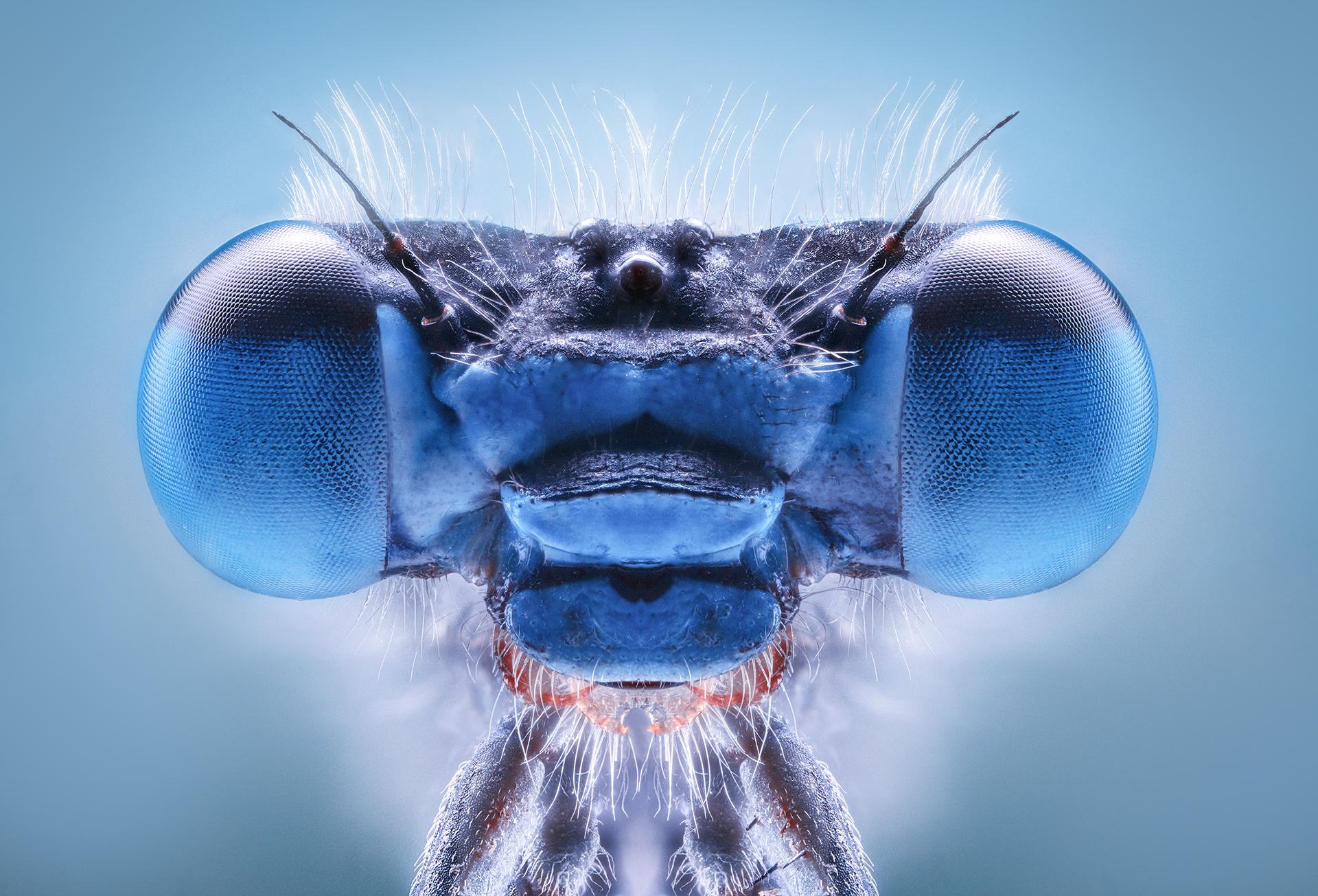 There are worlds we don't see, not because they're far away, but because they're too small. Damselflies From Another Planet is an invitation to immerse ourselves in that hidden universe, where insects—silent inhabitants of our environment—reveal themselves as creatures of a beauty as disturbing as it is fascinating. Through extreme macro photography, this series transforms the everyday into the extraordinary. Each faceted eye, each antenna, each tiny hair is exalted until it becomes a work of art in itself. The objective isn't scientific, it's aesthetic. It's not about classifying, but about c