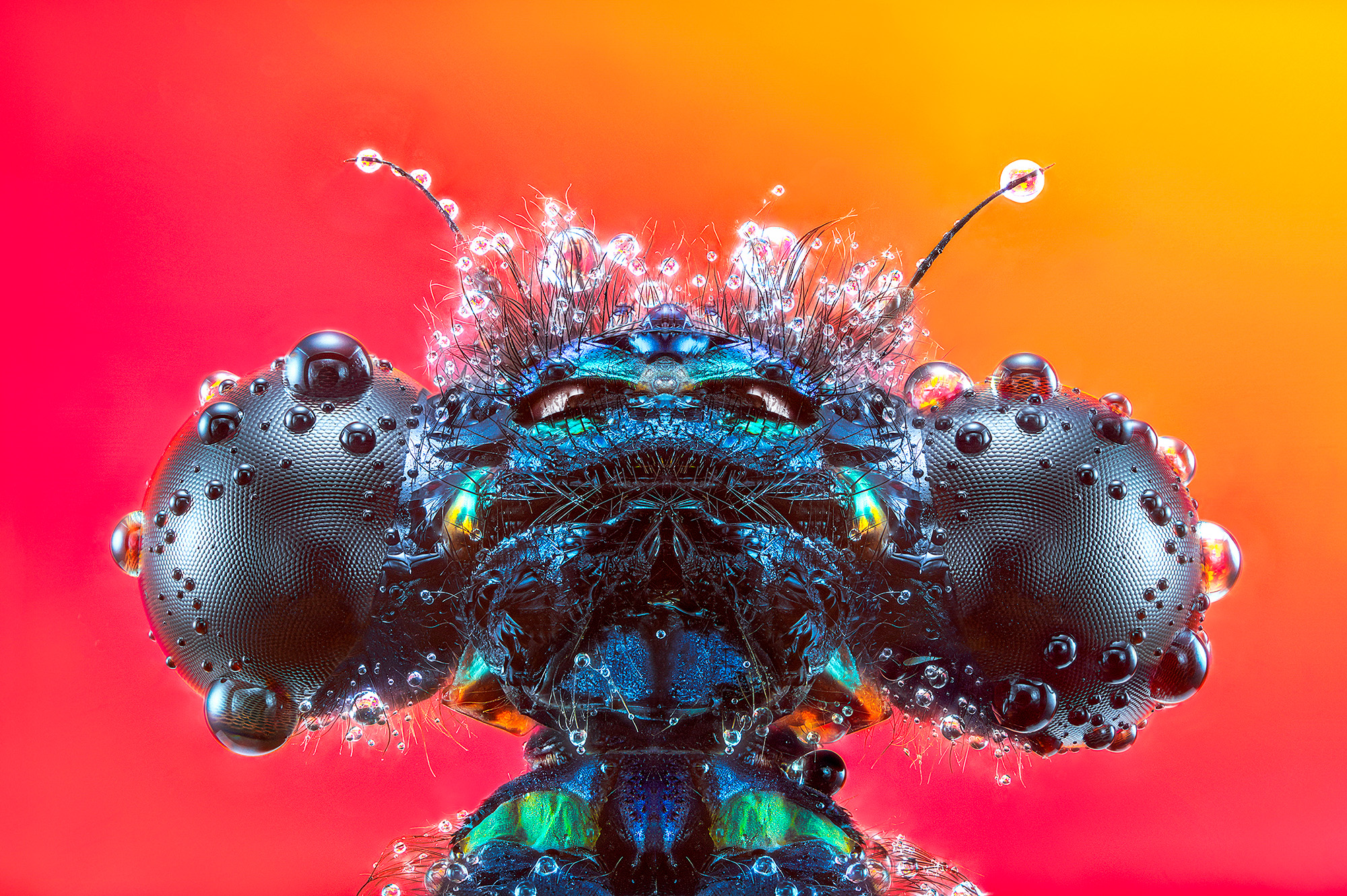There are worlds we don't see, not because they're far away, but because they're too small. Damselflies From Another Planet is an invitation to immerse ourselves in that hidden universe, where insects—silent inhabitants of our environment—reveal themselves as creatures of a beauty as disturbing as it is fascinating. Through extreme macro photography, this series transforms the everyday into the extraordinary. Each faceted eye, each antenna, each tiny hair is exalted until it becomes a work of art in itself. The objective isn't scientific, it's aesthetic. It's not about classifying, but about c